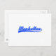 Manhattan, New York City, écrit avec un swash (queue). Polices en blanc et bleu. Conception de texte originale.