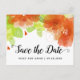 Calligraphie manuscrite et oranges éthérées fleurs mariage de automne floral Enregistrer la carte postale Date. La partie supérieure est recouverte de jolies fleurs orange et de feuilles verts.