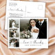 Budget Élégant, minimaliste main noire et blanche Écrite Cardiologie Mariage 4 Photo Collage Merci Carte postale. Modèle de carte mariage moderne avec quatre (4) photos à l'avant et une photo à l'arrière. Avec le texte "Amour et merci" dans une courbe lettrée typographie écriture coeur swash police. Personnalisez votre nom et merci message.