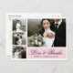 Budget Love and Thanks Script Grid 4 Photo Collage Mariage carte postale en rose et blanc. Modèle de carte moderne avec quatre (4) photos sur le devant et (1) une photo sur le côté arrière. Avec le texte "Amour et merci" dans une police de script de typographie manuscrite cursive. Personnalisez votre nom et ajoutez votre message. Si vous avez besoin d'aide ou de l'article correspondant, s'il vous plaît contactez-moi!