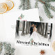 simple carte de vacances mariage moderne faire-part avec un élégant script rouge et un message de remerciement à vos invités. L'image des couples peut être personnalisée.