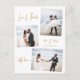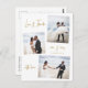 Élégant budget minimaliste main Lettré Collage photo Mariage abordable PostCard en or et blanc. Modèle simple de carte mariage mignon avec trois (3) photos sur le devant, photos collage mal arrangées et une photo sur le côté arrière. Avec le texte "Amour et merci" dans une jolie main lettré typographie script police. Ajoutez votre nom et un message de remerciement.