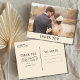 Un simple mariage photographique vous remercie des cartes postales dans un design de typographie ivoire et noire pour correspondre à vos belles photos mariages extérieures. Customisez le devant avec votre photo et ajoutez votre message de remerciement et retournez l'adresse au dos. Ceux-ci peuvent être commandés un par un si vous voulez créer un message personnalisé pour chacun de vos invités.