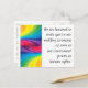 Un tournant dans l'histoire crée une opportunité parfaite de devenir un activiste audacieux. Vous voulez encourager vos amis et votre famille à défendre avec vous l'égalité dans le mariage? Au premier plan, cette carte postale a pour but d'express la frustration des couples de même sexe qui veulent se marier légalement aux États-Unis, mais qui ne le peuvent pas à cause de notre gouvernement. Au verso, il y a des informations sur comment contacter les responsables du gouvernement fédéral pour exiger l'égalité des droits humains pour tous les citoyens américains.