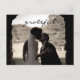 Composez facilement votre carte postale de remerciement en insérant votre propre photo mariage préférée ! Changez "reconnaissant" à tout texte de remerciement que vous préférez. Assurez-vous de customiser le dos de votre carte postale avec votre nouvelle adresse et votre photo mariage et/ou l'URL du site Web du mariage, en laissant un espace vide sur le côté gauche pour avoir écrit votre propre note de remerciement pour chaque invité. Soyez créatif !