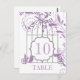 Mariage violet africain Numéros de tableau. Cartes de numéro de table de cage d'oiseaux dans le violet africain aussi connu sous le nom de violet, lilas ou lavande. Customisez le numéro de table ainsi que le nom de la table.
