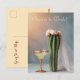 Ajoutez une touche amusante et fantaisiste à votre célébration de mariage avec cette carte postale de mariée cactus unique. Avec un cactus vêtu d'un voile et d'une couronne de fleurs à côté d'un verre à margarita scintillant, cette carte postale est parfaite pour les invitations à la soirée d'enterrement de vie de jeune fille, les annonces de douche nuptiale ou un souvenir de mariage joyeux. Un choix mignon et original pour les mariages sur le thème du désert ou du sud-ouest !