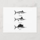 Cette carte postale de lotte comprend le marlin bleu, le marlin blanc et le poisson-voilier.