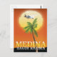 Médine Arabie Saoudite affiche de vacances d'un avion à hélice vintage volant à travers le ciel du soir.