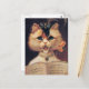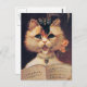 Belle illustration vintage d'un chat portant un casquette fantaisiste avec plume. Elle tient des partitions et chante