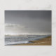 Une mer agitée crée de la mousse, du spray et de la brume presque obscurcissant un quai de pêche au loin. Il s'agit de quatre jetées de pêche sur la partie nord des rives extérieures de la Caroline du Nord.