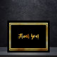 Une carte de remerciement pour un anniversaire marquant. Un fond de couleur noire et un cadre en faux or. Sur le devant, un style d'écriture manuscrit et le texte : Merci !