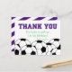 Dites "Merci" avec cette carte postale de ballon de football violet ! Soit une fête d'anniversaire, un baby shower, ou juste une fête d'équipe envoyez-les pour informer vos invités que vous les avez aimés venir! Le côté arrière peut être blanc et gauche blanc ou vous pouvez laisser les bandes violettes...votre choix !