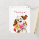 Chien mignon tenant un groupe de fleurs colorées, merci !