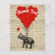 Un éléphant vintage mignon et amusant flottant sur des ballons coeurs rouges avec un modèle de texte Merci, ajoutez facilement votre propre message