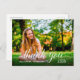 Cette carte postale de remerciement de graduation comporte un cadre photo personnalisé qui remplit l'avant tout. Le texte de calligraphie moderne "merci" apparaît en blanc au-dessus de la photo. Ajoutez votre propre message de remerciement personnel au dos.