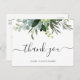Cette carte postale de remerciement présente des eucalyptus peints à l'aquarelle, des feuilles verts et de la calligraphie moderne. Pour une personnalisation plus avancée de cette conception, cliquez sur le lien "Customiser plus loin". Des articles correspondants sont également disponibles.