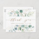 Cette carte postale de remercient les feuilles peints d'aquarelle eucalyptus, vert botanique et de parties scintillant d'or avec script or.