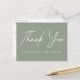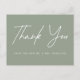 Simple mariage merci carte postale avec "Merci" affiché dans un script blanc manuscrit avec un arrière - plan vert sage. Personnalisez l'avant de la carte postale moderne merci en ajoutant votre nom. Ajoutez votre adresse de retour et un message personnalisé au dos.