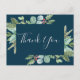 Cette carte postale de Noël verte et marine des baies merci est parfaite pour un mariage de décembre. Le design des vacances d'hiver est composé d'eucalyptus vert sauge doux et de plantes modernes avec des sprigs de baies rouges classiques. Personnalisez le dos de la carte postale avec vos noms, votre adresse de retour et un message de remerciement. Sinon, laissez la section de modèle de message de remerciement vide pour écrire à la main une note personnalisée réfléchie sur chaque carte après leur arrivée. Ces cartes peuvent être utilisées pour un mariage, une douche nuptiale ou tout événement spécial.