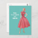 Throwback retro / style vintage "Merci" dispose d'une femme glamour des années 1950 avec texte personnalisable sur arrière - plan bleu rétro.
