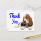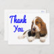 Aww...qui peut résister au visage sucré d'un chien chiot de Basset Hound ? Cette carte postale de remerciement amusante comprend un basset hound dog assis sur un arrière - plan blanc immaculé. Ce petit chiot est prêt à vous aider à envoyer grâce à votre famille et vos amis.