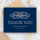 Elégante carte postale de remerciement avec un beau design florissant contre un arrière - plan bleu marine.
