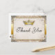Carte postale Fairytale Mariage Merci. Doté de couleurs pourcentages royales d'or et d'argent et de perles. Cette carte postale de mariage de conte de fées chic et sophistiquée est idéale pour tout mariage à thème ou mariage de cravate noire. En apportant une touche d'élégance et de charme, vous enverrez des salutations à vos invités dans un style absolu avec cette carte postale de mariage de conte de fées vous remercie pour tous vos invités. A des perles et des diamants sur les fleuris qui sont dans les coins. Une couronne royale se trouve en bas à droite, ornée d'or et de bijoux. Une illustration en filigrane se trouve au-dessus d'un arrière - plan vintage et une bordure ornée tient le milieu texturé en papier orné. Les produits correspondants se trouvent dans la section mariage de mon magasin.