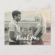 Carte postale mariage moderne avec un grand "Merci" au coeur élégant et texte personnalisé. Ajoutez vos meilleures photos et détails personnalisés à l'avant et à l'arrière de la carte.