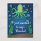 Adorable sous le carte de remerciements d'anniversaire de pieuvre vert mer. Cette carte présente une pieuvre très mignonne avec huit pattes et des bulles autour de lui. La pieuvre a de grands et mignons yeux et il flotte au-dessus du sol de l'océan. Cette carte est tellement mignonne pour envoyer vos invités après la fête pour leur dire merci d'être venu et que vous avez apprécié leur compagnie. Idéal pour les garçons ou les filles.