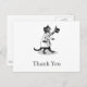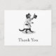 Cette carte postale de Merci personnalisée a de la place pour votre texte personnel avant et arrière et un stylo et encre noir et blanc vintage d'un chat portant des lunettes et un manteau faisant basculer son chapeau supérieur.