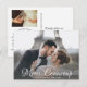 Dites merci avec élégance avec cette carte postale comportant 2 de vos photos mariages superposées avec une police de caractères chic et lettrée qui dit "Merci Beaucoup" ou changez de texte personnalisé. Ajoutez vos noms à l'avant et tapez dans votre note de remerciement personnalisée à l'arrière. Si vous préférez écrire votre note à la main, il suffit de supprimer le texte et la photo courant pour faire plus d'espace. Vos invités seront ravis de voir des photos de votre mariage et de recevoir vos remerciements attentionnés.