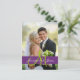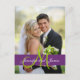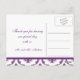Carte postale de Merci photo Mariage damassé violet. Remplacez l'échantillon de photo par votre propre photo mariage, ajoutez votre monogramme et vos noms et votre mariage merci texte.