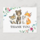 Merci à vos invités de célébrer la maman à être! Cette carte postale de remerciement présente une aquarelle illustrant les animaux des forêts entourés de feuilles d'eucalyptus. Personnalisez avec vos informations ou cliquez sur "Cliquez pour customiser plus loin" pour modifier les styles, la taille et les couleurs des polices.