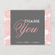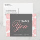Fleurs Batik rose et gris Merci Carte postale Fleurs batik rose et blanc ornées d'un cadre gris. Ce carte de remerciements est parfait pour les mariages, baby showers, diplômes et autres événements.