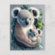 Carte Postale Mère Koala Ours et bébé, aquarelle