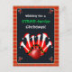 This festive Christmas bowling postcard features Santa-themed bowling pins and a bright red holiday bowling ball set against a cheerful Christmas plaid background the perfect design to spread seasonal fun and party cheer.