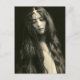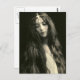 Photographie vintage d'une jeune femme avec des cheveux très très longs, un regard sérieux sur son visage alors qu'elle regarde vers le bas et un petit serre-tête métallique