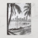 Cette carte postale de voyage, dessinée à la main, présente le paysage urbain de Miami.