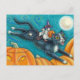 CARTE POSTALE MICE BLANCHE & CHAT NOIR SUR CHASSE HALLOWEEN SCAV