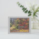 CARTE POSTALE DE LA CAMPAGNE MICHIGENNE AVEC ARBRES EN AUTOMNE COULEURS DE ROUGE, ORANGE ET OR AVEC FENÊTRE EN BOIS DE RAIL EN BOIS À L'AVANT. DES FEUILLES TOMBÉS REPRÉSENTENT LE SOL.