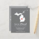 Faire-part de déplacement | State MICHIGAN Moderne faire-part mobile avec l'état de MICHIGAN, avec un coeur rouge et avion mis sur un arrière - plan gris. La couleur arrière - plan peut être changée facilement en cliquant sur personnaliser, puis cliquez pour customiser plus loin pour voir notre sélecteur de couleurs. De là, vous pouvez aussi déplacer l'avion et le coeur! Contactez notre magasin si vous avez besoin d'aide ou si vous avez besoin d'un autre état.