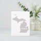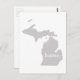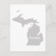 Une carte postale avec la silhouette de la silhouette de l'état Wolverine du Michigan remplie de gris massif avec le mot à l'intérieur.