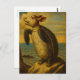 This postcard features a vintage oil painting style interpretation of the Mock Turtle character from Lewis Carroll's 'Alice's Adventures in Wonderland' (1865). The creature is part turtle, part bovine calf. The Mock Turtle is a very sad character from the children's adventure story, and is depicted crying.