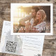 Annoncez votre grand jour avec cette élégante carte de sauvegarde de date conçue comme une carte postale de mariage. Parfaite pour les couples à la recherche d'une option économique, cette carte présente une typographie de style calligraphique et un modèle de photo moderne. La mise en page minimaliste simple met en valeur votre histoire d'amour avec une élégance stylée et une photographie minimale. Ajoutez un code QR pour votre site web de mariage pour tenir les invités informés. Une façon créative et chic de définir le ton de votre jour spécial !