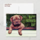 La couverture de la carte comporte une photo d'un chiot marron mignon qui se penche sur une clôture avec un message Bonne Fête des Pères. Personnalisez le texte sur la couverture et à l'intérieur du modèle, supprimez-le et/ou modifiez-le à l'aide de l'outil de conception pour choisir une couleur, une taille et un style de police qui vous plaisent. Changez le texte du modèle pour toute occasion spéciale ou expression pour un message de pensée, d'absence ou de simple bonjour.