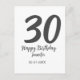Carte Postale modèle noir date nom anniversaire 30 ans