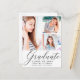 Annoncez votre diplôme 2022 à votre famille et amis et les invitation à votre fête avec cette carte postale moderne personnalisée collage photo et faire-part d'invitation de fête. L'avant de la carte a trois photos que vous pouvez changer à votre propre. Ci-dessous, dans le script noir moderne, on lit "Graduate" avec votre nom, année de classe et nom de l'école à personnaliser. Le verso de la carte postale contient plus de détails sur votre graduation à customiser. Conçu par l'artiste Susan Coffey.