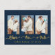 Conception de rendez-vous à sauver à la main en or courbé - Carte postale de sauvegarde de 3 photos modernes bleu marine. Elke Clarke © D'autres styles et couleurs disponibles dans notre boutique sur www.zazzle.com/monogramgallery