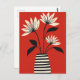 Un bouquet rouge ardent dans un petit vase rayé blanc éclate sur un fond plat moutarde—vibrance rétro avec une élégance intemporelle.